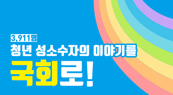 더불어 결과보고서를 국회의원 300명에게 보내 청년 성소수자의 다양한 목소리를 전달하고자 합니다. 후원을 통해 국회의원에게 청년 성소수자의 이야기를 들려주는 캠페인에 동참해주세요!